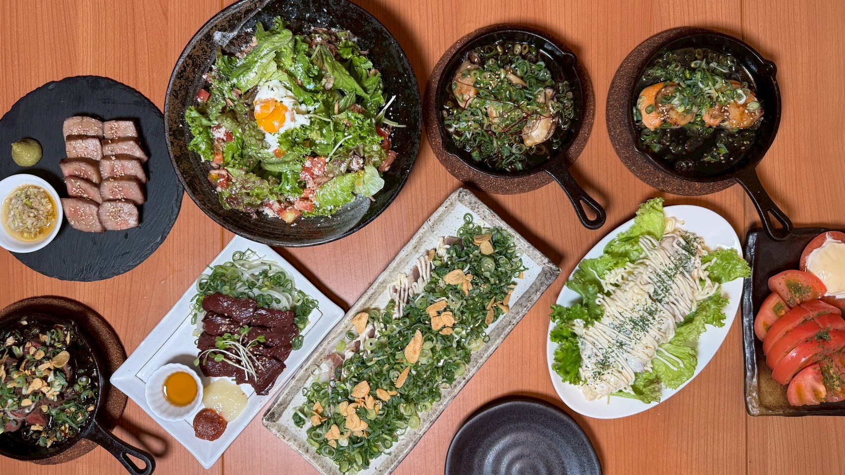 熟成牛タンや会津坂下産の馬刺しなど、こだわりの逸品に加えて、地元の食材も鉄板で丁寧に。