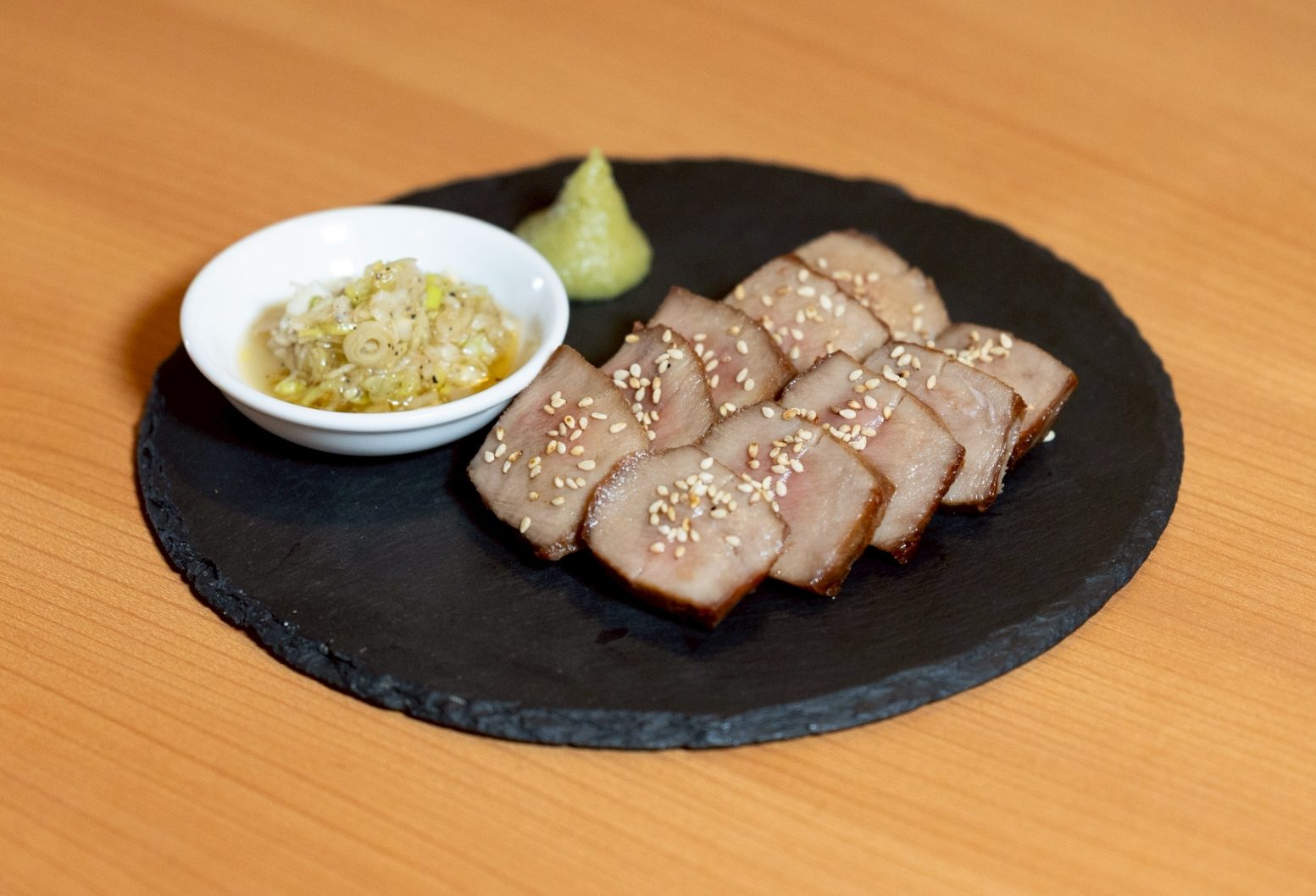 熟成牛タンやお好み焼きなどの鉄板メニューを中心に、
